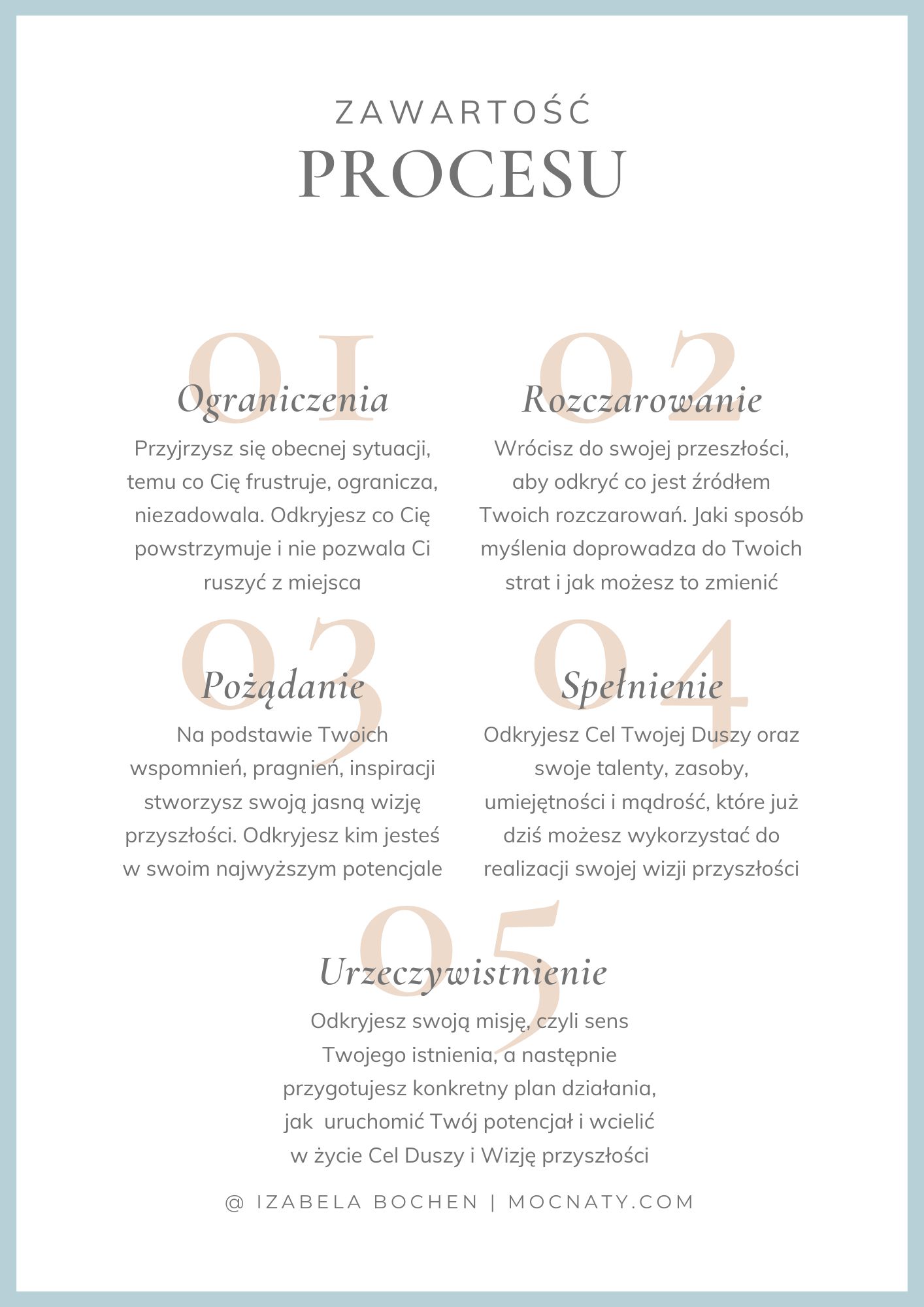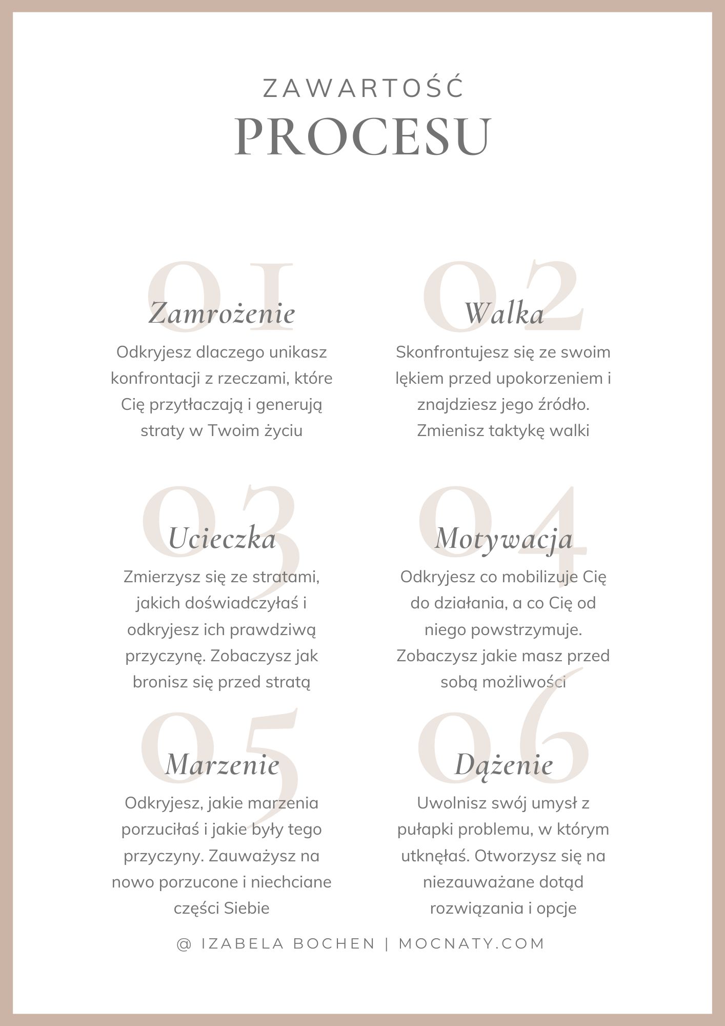 Pomogłam ponad 2 tysiącom Kobiet świadomie kreować szczęśliwe i pełne pasji życie. Dzielę się konkretnymi wskazówkami i lekcjami z własnych, trudnych życiowych doświadczeń. Daję Kobietom szeroką wiedzę, sprawdzone narzędzia terapeutyczne, psychologiczne i duchowe oraz inspirację, do tego, aby odkrywały swoją wewnętrzną MOC, dokonywały odważnych zmian i czerpały radość z życia!